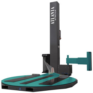 - Der Bediener stellt die Palette auf den Drehteller und startet den Wickelzyklus