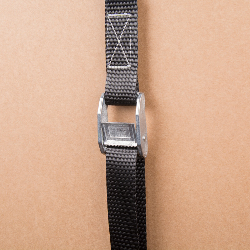 Mithilfe der Zurrgurte wird der Karton sicher verschlossen.