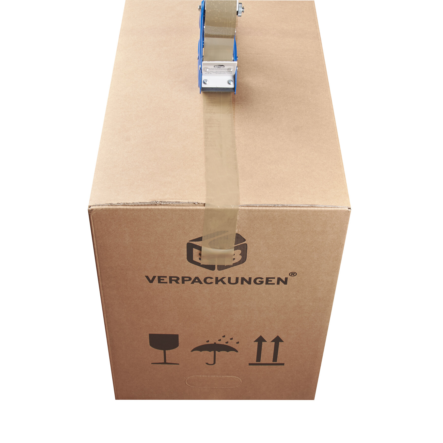 Verkleben Sie mit passendem Klebeband den Spalt in der Mitte des Kartons über die gesamte Länge.