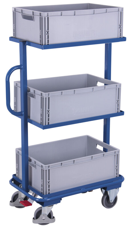 VARIOfit Beistellwagen offen mit 3 Kunststoffkästen + EasySTOP - Enzianblau