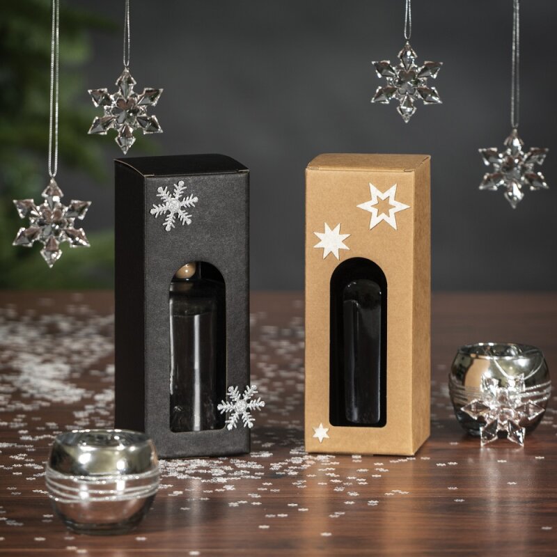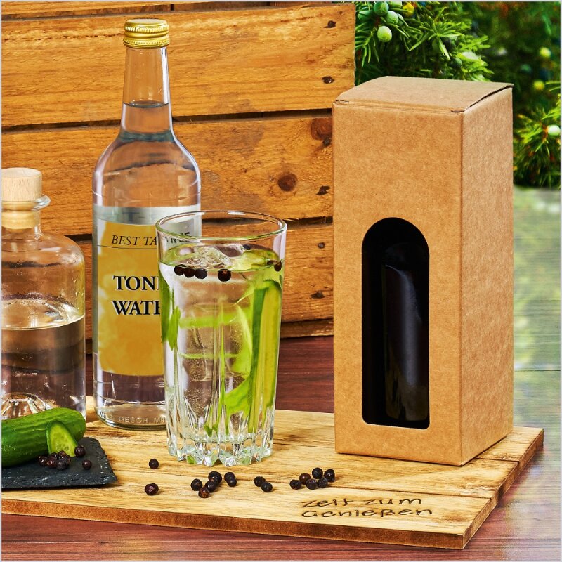 - Faltschachtel mit Sichtfenster für eine Flasche Gin/Spirituosen