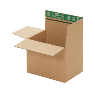 Der Fix-Aufrichtekarton ist mit den Innenmaßen von 229x164mm für DIN A5+ Formate geeignet. Die Füllhöhe lässt sich durch die Höhenriller von 50-115mm beliebig anpassen. Sie erhöhen somit den Schutz und sparen Versandkosten sowie weitere Füllstoffe zugleich. Die stabile Versandverpackung besteht aus 1-welliger Wellpappe sowie aus einem doppelten Boden mit Steckverschluss und bietet einen wirksamen Schutz für das Verpacken sowie das Lagern von leichten bis mittelschweren Packgütern.