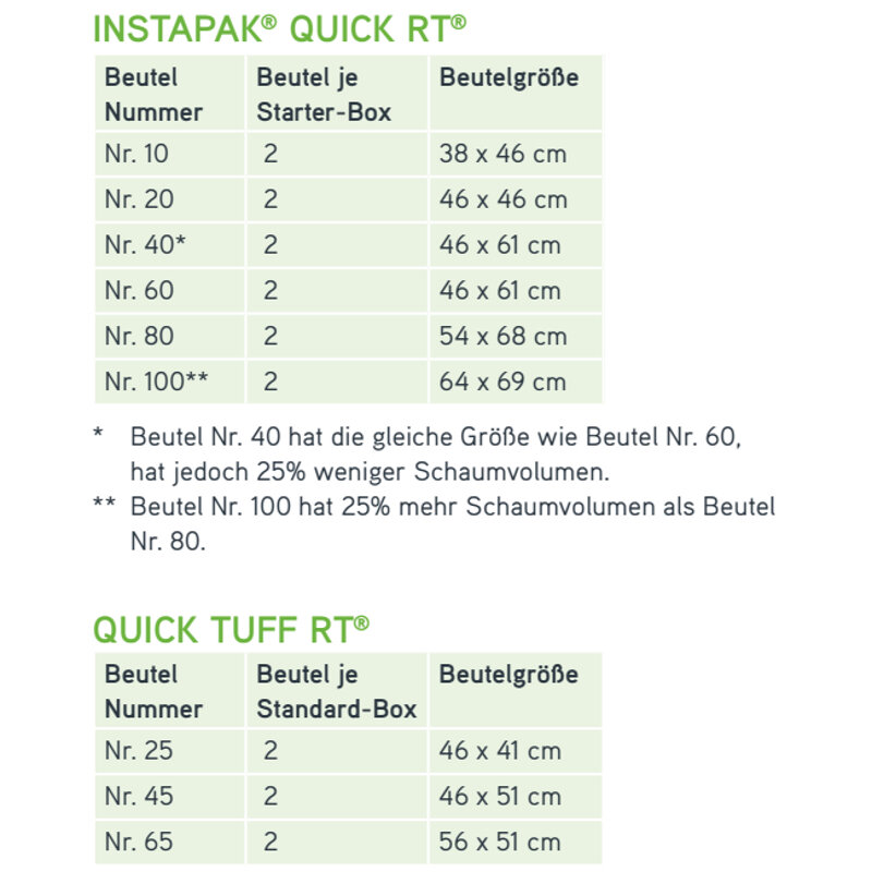 - Set besteht aus 12 Quick RT und 6 Tuff RT Beuteln (2 Beutel je Größe)