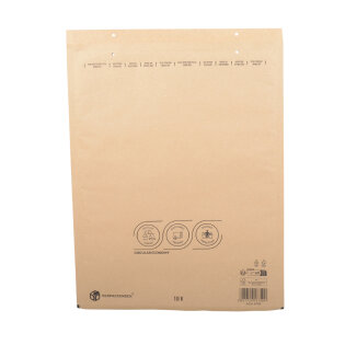 Die braune Luftpolsterversandtasche hat ein Außenmaß von 370x480mm und entspricht der Größe 10/K. Die Versandtaschen haben eine Innenlage aus PE-Luftpolsterfolie und eine äußere Schicht aus reißfestem Kraftpapier. Die Luftpolsterfolie schützt zerbrechliche Versandgüter sowie Waren mit empfindlichen Oberflächen vor Transportschäden wie Stößen, Schlägen oder Kratzern. Das wasserabweisende Kraftpapier schützt vor Schmutz und Feuchtigkeit. Sowohl die Luftpolsterfolie als auch die Versandtasche sind recycelbar.