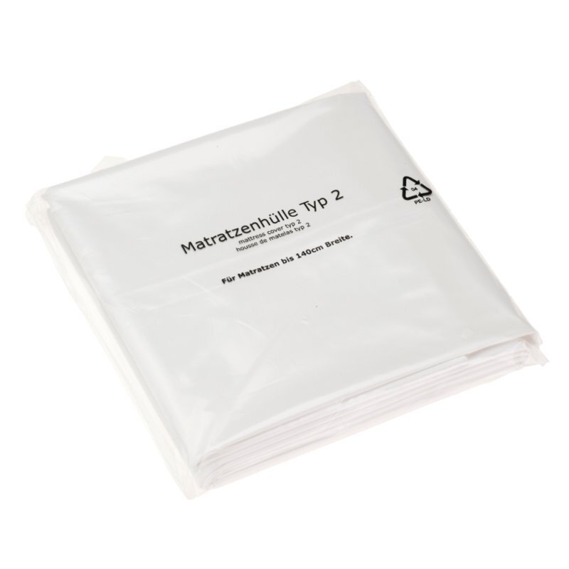 Die reißfeste Matratzenhülle hat Außenmaße von 1700x2350mm sowie eine Folienstärke von 30µ und bietet damit ausreichend Schutz für Matratzen bis 1,4m Breite. Die Oberfläche ist äußerst empfindlich und anfällig gegen Feuchtigkeit, Staub und Schmutz jeder Art. Die Spezialfolie schützt vor Verunreinigungen und Schäden wie Nässe oder Staub — beispielsweise während des Umzugs oder der Aufbewahrung im Keller.