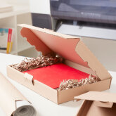 Die Versandkartons aus 1-welliger Pappkartonage schützen Ihre Dokumente und Waren effektiv vor Transportschäden. Zwei Seitenflügel und ein mittiger Steckverschluss verhindern ein vorzeitiges Öffnen des Kartons. Zwei lange Flügel verhindern ein Herausfallen der Ware am Rand der Versandverpackung.
