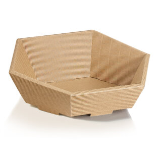 - 6-eckiger Präsentkorb aus naturbelassener Wellpappe