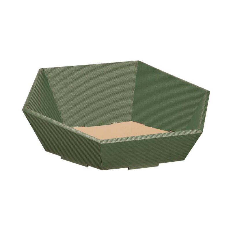 - 6-eckiger Präsentkorb aus naturbelassener Wellpappe
