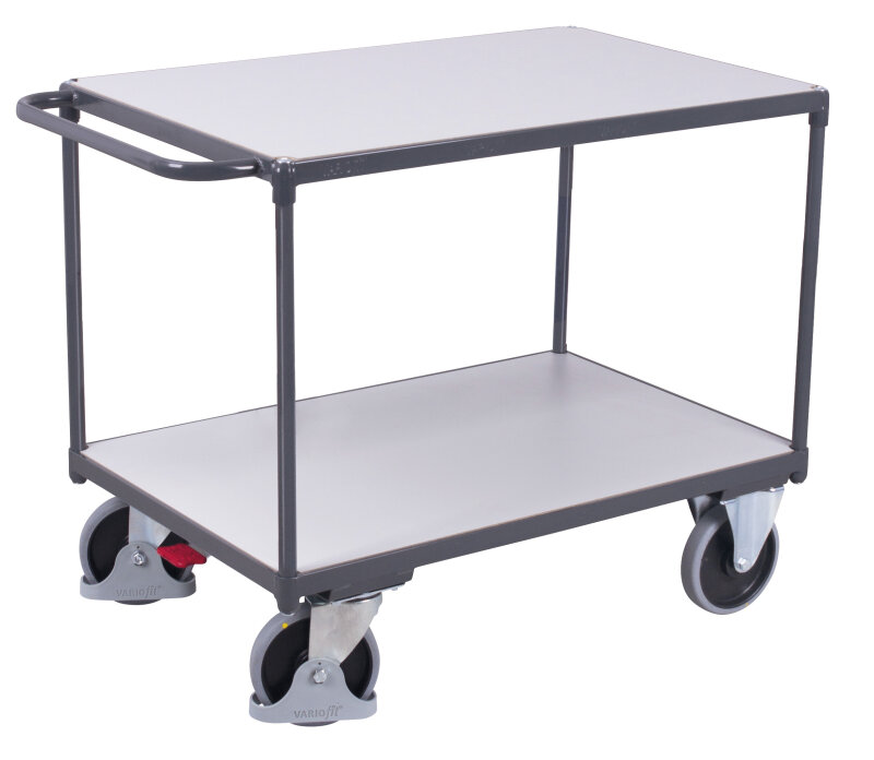 VARIOfit Schwerer ESD Tischwagen mit 2 Ladeflächen Typ L + EasySTOP - Enzianblau