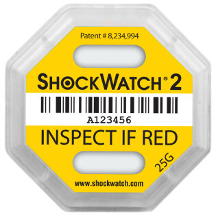ShockWatch 2 Stoßindikatorlabel mit Warnhinweisaufkleber (gelb)