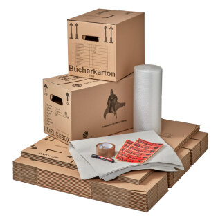 Eine gute Organisation Ihres Umzugs ist in vielen Belangen oftmals wichtiger als pure Muskelkraft und Durchhaltevermögen. Denn neben Ihnen sind es vor allem Ihre Besitztümer und Möbelstücke, die unbeschadet den Weg in das neue Zuhause finden wollen. Eine ausreichende Menge an passenden Umzugskartons sollte also vorhanden sein, denn es wird schnell unterschätzt, wie viel sich auch auf kleinem Raum ansammeln kann. Mit dem Umzugskomplettpaket sind Sie diesbezüglich auf der richtigen Seite. Es beinhaltet genügend professionelle Umzugskartons für den Hausrat von Wohnungen mit einer Größe bis 50 Quadratmetern und darüber hinaus noch weitere nützliche Umzugsutensilien.