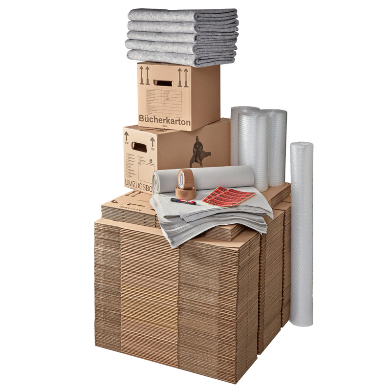 All diesen unnötigen Schwierigkeiten können Sie ganz einfach aus dem Weg gehen, indem Sie sich auf unsere Erfahrungswerte verlassen und ein Umzugskomplettpaket mit einem angemessenen Umfang bestellen. Bei unserem Komplettpaket für 4 bis 5-Zimmer-Haushalte sind neben der oben erwähnten Grundausstattung auch ausreichend Möbelpackdecken enthalten, sodass auch das letzte Familienerbstück sorgfältig umwickelt werden kann. Zusammenfassend lässt sich sagen: Sobald Ihre Wohnung oder Ihr Haus eine Größe von 100 m2 überschreitet, ist dies das richtige Paket für Sie.